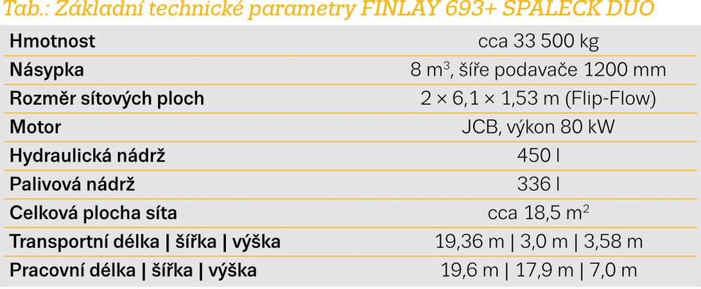 Nový třídič kombinuje robustnost britské značky FINLAY s precizní německou technologií SPALECK. Na obou sítových plochách o rozměru 6,1 × 1,53 m jsou instalovány Flip-Flow segmenty. Ty tvoří pružné pásy upevněné mezi střídavě pevnými a pohyblivými příčkami.