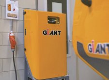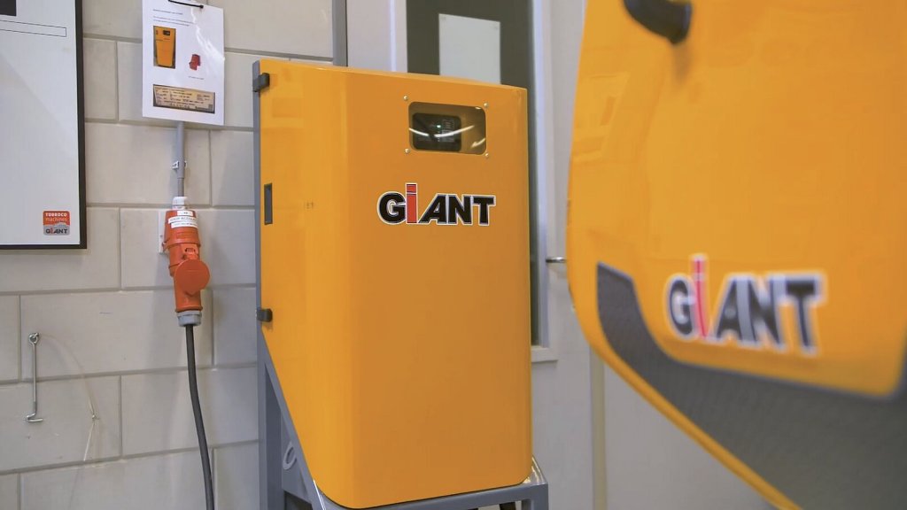 Srdcem nakladače GIANT G2200E je lithium-železofosfátová baterie (LFP), která může být kromě základní kapacity 13,3 kWh (260 Ah / 48 V) dodána též ve variantě 20,0 kWh (380 Ah / 48 V) či 26,6 kWh (520 Ah / 48 V). Tento typ akumulátoru s vynikající cyklickou životností se dále vyznačuje velmi vysokou tepelnou a chemickou stabilitou a s tím souvisejícím minimálním rizikem požáru či exploze. Co se týká nabíjení, tak od výrobce je k dispozici integrovaná 3kW AC nabíječka (konektor Typ 2) schopná nabít základní baterii zhruba za 4 hodiny. Volitelné externí nabíječky s výkonem 7,2 kW či 14,4 kW výše uvedenou dobu zkrátí přibližně na polovinu respektive čtvrtinu.