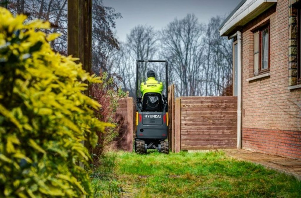 Zatahovací podvozek umožňuje zúžit stroj až na 730 mm, takže projede běžnými dveřmi, úzkými průchody nebo se dostane na těžko přístupná místa kolem domů. Konstrukce „zero tail swing“ navíc zajišťuje, že zadní část nepřesahuje obrys stroje, což výrazně snižuje riziko poškození okolí. To oceníte hlavně ve městě, u zdí, plotů nebo při rekonstrukcích, kde je každý centimetr prostoru důležitý.