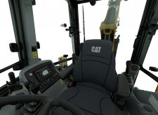 V přepracované kabině najdeme hned několik novinek. Asi nejvíc pozornosti upoutá dvojice nových joysticků, integrovaných přímo v loketních opěrkách otočné sedačky. Uspořilo se tím místo pro obsluhu a zlepšila se ergonomie ovládání. Palubní deska se skládá ze čtveřice klasických analogových ukazatelů a nového multifunkčního LCD displeje s dotykovou obrazovkou (volitelně). Informace jsou zobrazovány pomocí oblíbených vyskakovacích oken, při údržbě nebo při provozních problémech přijde vhod podrobný diagnostický popis. LCD displej slouží také jako vstupní brána do bezpečnostního systému; bez zadání příslušného kódu obsluhou je motor, převodovka a hydraulický systém elektronicky blokován. Pomocí LCD lze každopádně ovládat celou řadu konfigurovatelných funkcí, například nastavovat již zmíněné hydraulické průtoky nebo volit mezi přednastavenými provozními režimy.