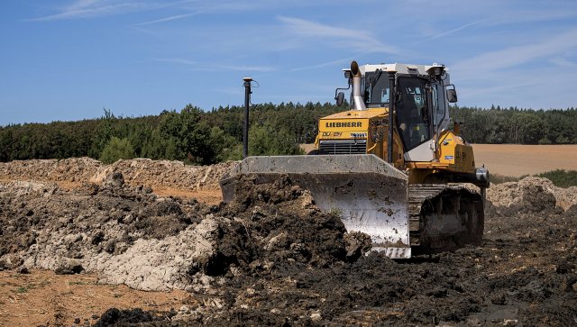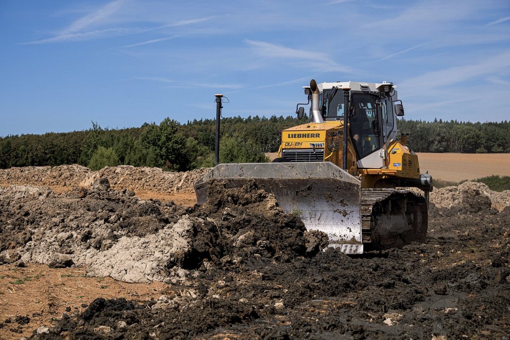 Buldozer Liebherr PR 726 G8 se stal klíčovým hráčem celého projektu. Díky nivelaci Unicontrol, šesticestné radlici s vnitřním vedením, XL podvozku s jednožebrovými pásy a vynikající viditelnosti z kabiny zvládal přesně to, co bylo v terénu potřeba. „Ovládání je skvělé, stroj reaguje přesně a hladce. Je to spolehlivý parťák i pro dlouhé směny,“ pochvaluje si majitel. K tomu doplňme nízkou spotřebu 12,6 litrů na motohodinu, LED osvětlení dovolující práci i po setmění, integrovanou kameru pro zvýšení bezpečnosti či tankovací čerpadlo. To vše z rypadla dělá stroj, na který je spoleh v každé situaci – a právě to se v Blížejově ukázalo jako rozhodující.