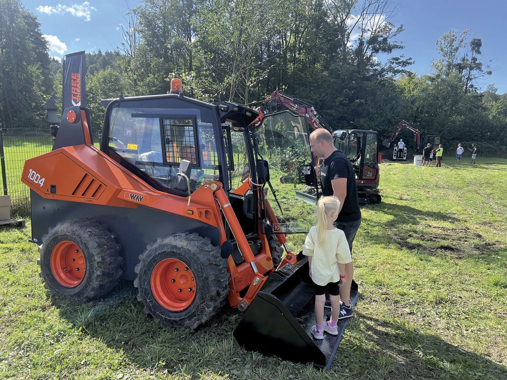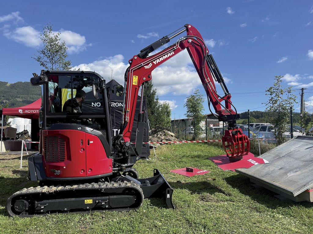 Druhá pořadatelská firma, Hošek Trade, přivezla do Kunčic ukázat rozsáhlou škálu příslušenství – od zemních vrtáků Malaguti a Digga, přes drapáky a lžíce Dala Gripen, až po speciální demoliční příslušenství. Vrcholem byla ovšem prezentace jejich klíčového produktu – naklápěcího rotátoru švédského výrobce Rotottilt na pásovém rýpadle Yanmar. Na speciálně připravené ploše si návštěvníci mohli sami vyzkoušet rychlou výměnu nástrojů pomocí systému QuickChange, práci s přidržovacími kleštěmi nebo manipulaci s paletami pomocí vidlí. Další tiltrotátor téže značky byl k dispozici na minibagru Takeuchi. Prezentovanou novinkou byl také nivelační systém z Finska – Novatron Xsite – který zaujal každého, kdo řeší přesnost a efektivitu na stavbě. Novinka finského výrobce nás zaujala natolik, že se jí budeme věnovat v samostatném článku. Součástí prezentace byla i výstava produktů spřízněné společnosti TRASO s.r.o., která tu ukázala sortiment dvouplášťových plastových nádrží pro průmyslové využití.