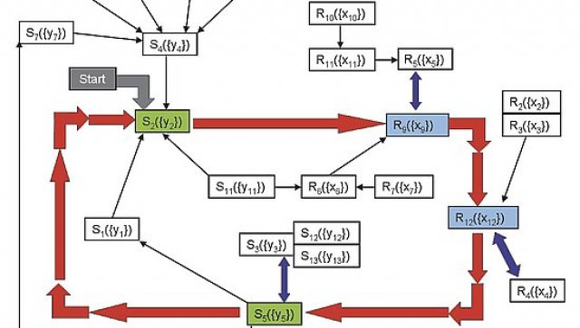 Navržená posloupnost regulačních parametrů dle obr. 4 je závislá na počátečním stavu hutněné vrstvy materiálu před hutnícím přejezdem. Po zjištění počátečního stavu je proces hutnění matematicky simulován pro první hutnící přejezd na modelu vibračního válce pro daný typ stroje. Stroj reguluje proměnný parametr vibrace s kritériem minima vložené energie při maximální účinku a s ohledem na předchozí hutnící účinky. Po dodání energie nutné pro proces hutnění opět zjišťuje stav po přejezdu a z vyhodnocených změn a nových stavů se opět vrací na počátek procesu s novými vstupními hodnotami. Současně je během procesu kontrolován vztah ke konečnému stavu zhutnění při dodržení kritéria minimální energie hutnění.