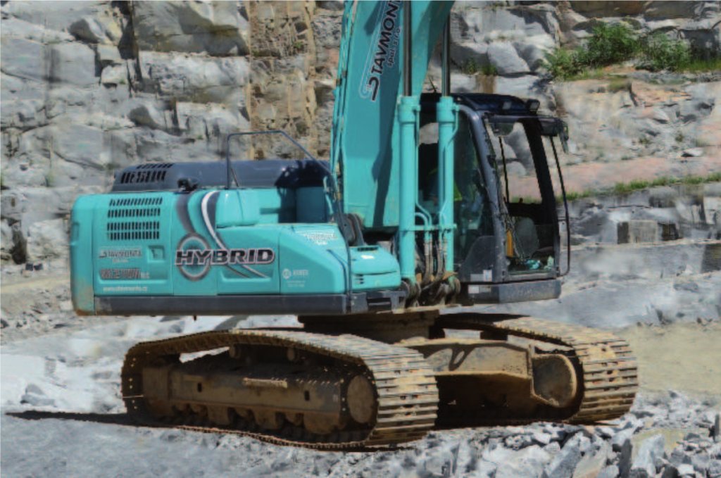 Významná západočeská stavební společnost provozuje ve svém strojovém parku několik desítek stavebních a zemních strojů různých značek od kategorie mini-bagrů až po 40tunová těžební rýpadla. Nicméně, dvě hybridní japonská rýpadla Kobelco jsou prvními zástupci této značky v jinak početné flotile. Stroje, vybavené skalní lopatou a hydraulickým kladivem, pracují ve dvousměnném provozu při těžbě žuly, která je pak používána pro výrobu dlažebních kostek nebo jako tzv. regulační lomový kámen (používá se například při opevňování vodních toků).