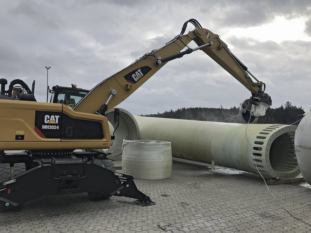 K dělení demontovaných listů rotoru tamní firma EURECUM používá nové kolové rýpadlo Cat řady MH s typovým označením MH3024 (24 tun). Stroj je už z továrny osazen speciálním příslušenstvím – hydraulicky poháněnou diamantovou pilou KEMROC KDS50 s výkonem 150 kW a diamantovým kotoučem o průměru 1200 mm nebo 1000 mm. Tato kombinace nosiče a příslušenství už za poměrně krátkou dobu prokázala svou účinnost a také trvanlivost. Její vývoj ale vyžadoval spoustu hodin v dílně, aby se vyladily všechny „mouchy” – bylo potřeba zajistit nejen dostatečně účinné chlazení pily, ale také nastavit optimální rychlost řezání, aby nedocházelo k přílišnému opotřebení drahého diamantového kotouče. Samozřejmě se testovala i hladina hluku a prašnost při rozřezávání velkých listů rotorů.