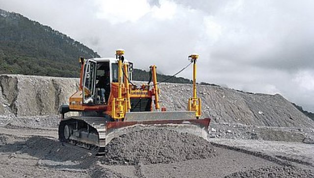 Liebherr dozer vybavený 3D nivelací Trimble GCS900 s dvěma anténami GPS