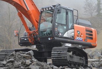 Na Demo tour nejvíce zastoupená kategorie strojů. Před stanem s občerstvením byla vystavena 16tunová verze ZX160-5B spolu s 25t tunovým ZX250-6, patřící do inovované série 6. Tahákem bylo rýpadlo ZX300-6, u kterého se krátce zastavíme.