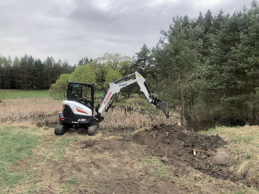 Na pomoc na farmě Bobcat připravil celou flotilu strojů. Prim hrála především kompaktní rypadla, a to středně velká a obratná tříapůltuna E35z, většinu těžké práce zastala šesti tuna E60, a když byla třeba maximální síla a dosah, nastoupil největší osmitunový bagr E88. Rypadla především kopala strouhy, výkopy pro vedení elektřiny, čistila rybníky a hloubila základy. Nejnovější stroje z nedaleké dobříšské továrny Bobcat doplnil dnes již historický model Bobcat 323, kterým místní bagrista Josef Kavka dělal například drenáže.